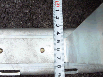 もう一方のホイールに【測定ゲージ A】をセットし、メジャーで後端の距離と前端の距離を読み取る。