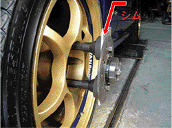 例えば、後輪が6mmトレッドが狭くなった場合、左右後輪に3mmの板シムを用います。